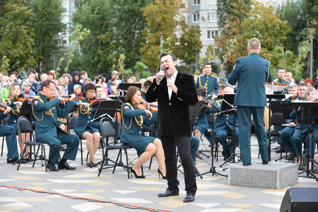 Под руководством дирижёра, подполковника Дмитрия Шибаева, музыканты исполнили любимые военные песни, такие как «Нам нужна одна победа», «Синий платочек» и «Письмо отца». А в честь празднования Дня города оркестр подарил жителям трогательную композицию «Город влюблённых людей».