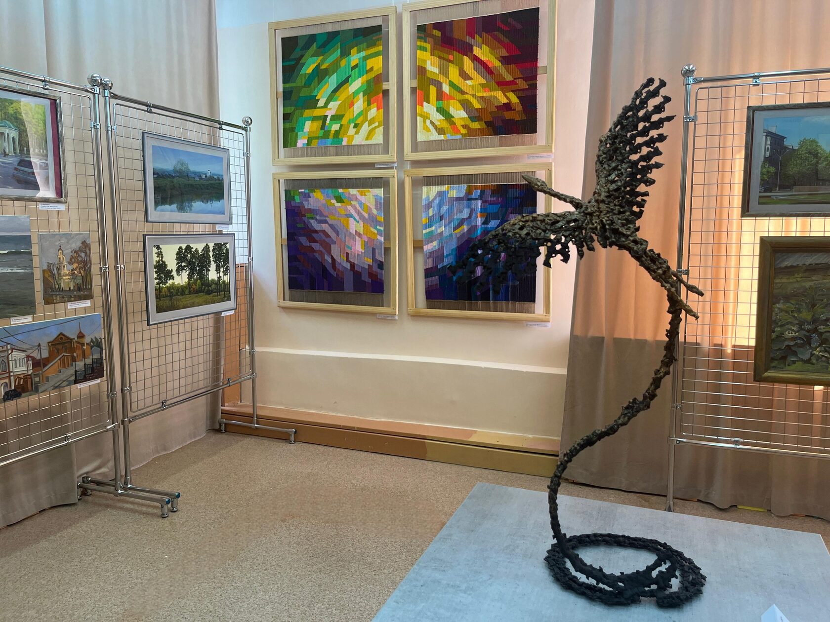 Посетители выставки могут увидеть живописные полотна, графические произведения, изделия из керамики, скульптуры из дерева, стекла и металла.
