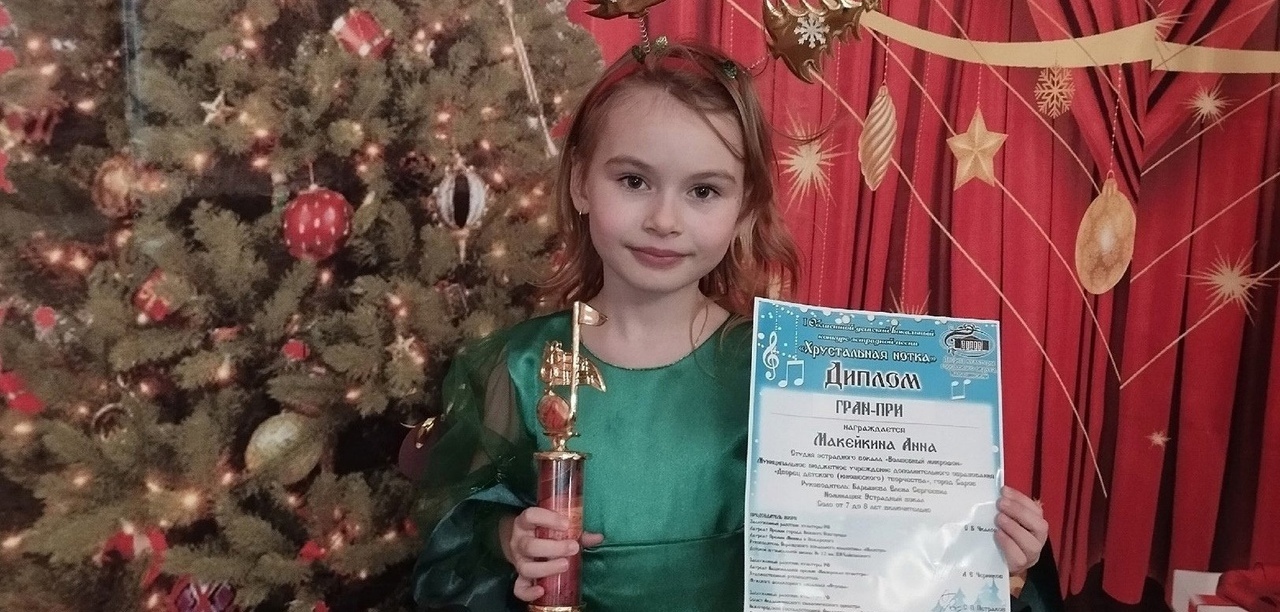 Анна Макейкина приняла участие в Областном детском вокальном конкурсе эстрадной песни «Хрустальная нотка» в Навашино и не только стала лауреатом первой степени, но и взяла главную награду - гран-при.