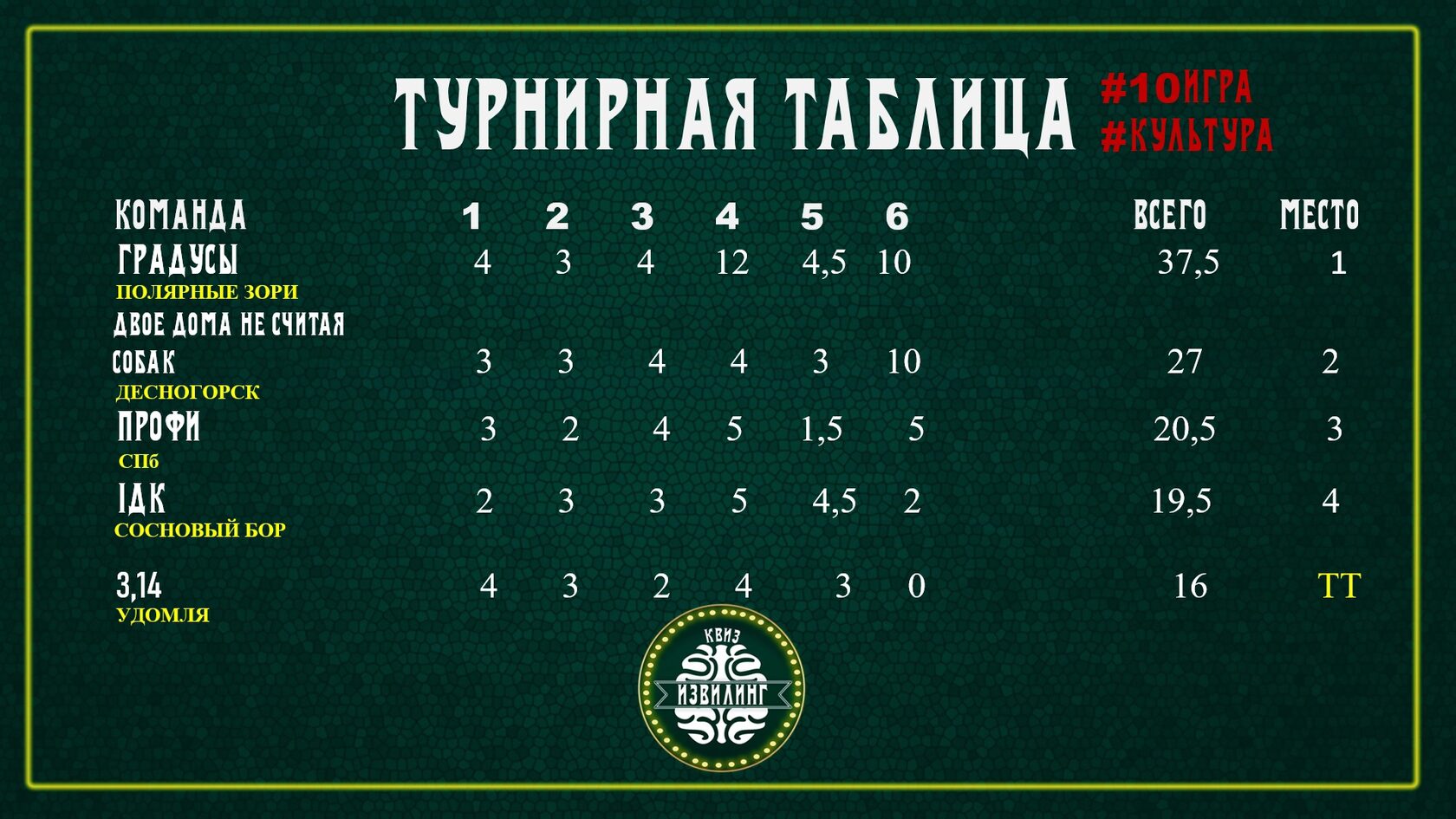 В группе "Атомный "Извилинг" опубликована турнирная таблица интеллектуальной битвы на тему "Культура".