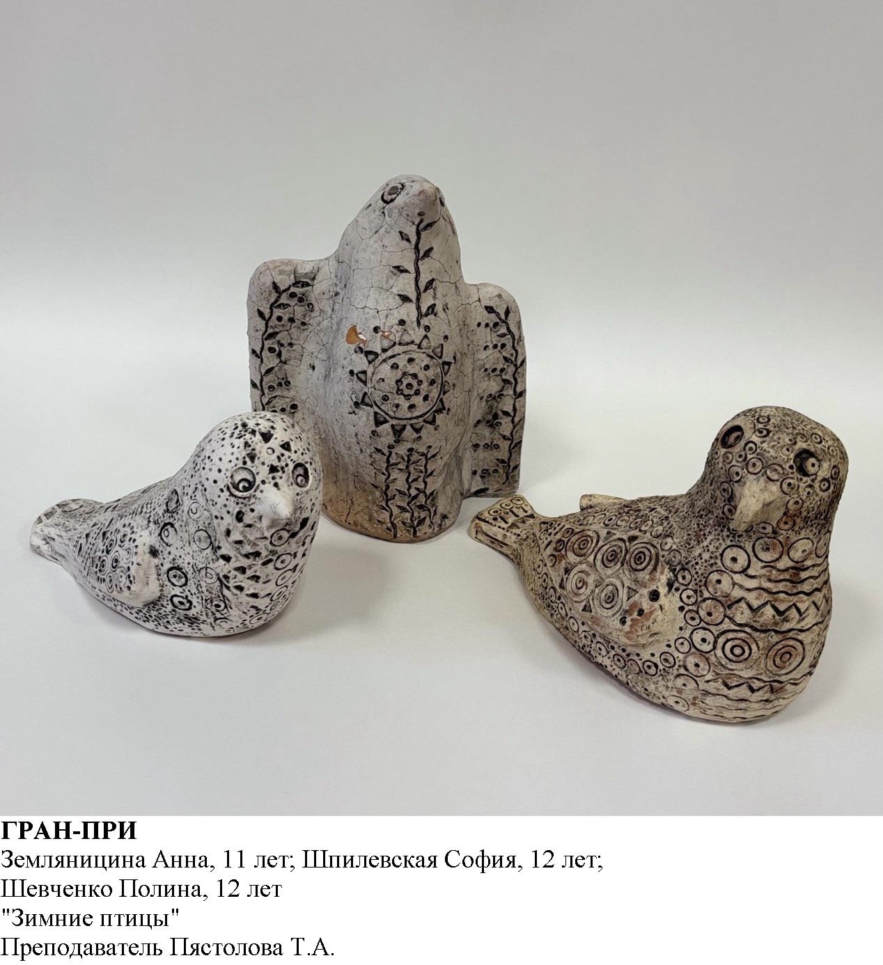 Гран-при конкурса завоевала коллективная работа учащихся Детской школы искусств Лесного под названием «Зимние птицы». Авторы работы – Анна Земляницына, София Шпилевская и Полина Шевченко.
