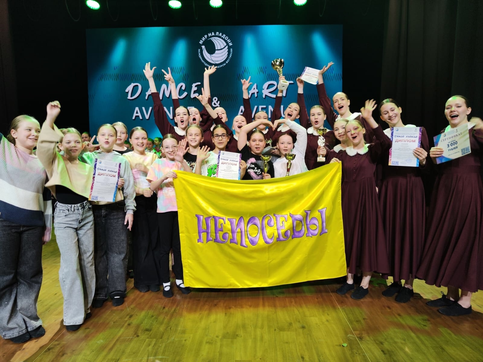 Коллектив блестяще выступил на конкурсе и заслужил почетные награды. Смешанная возрастная категория завоевала Гран-При, старшая и средняя группы стали Лауреатами I степени. Солистки Дарья Попова и Снежана Шорохова также были признаны Лауреатами I степени.