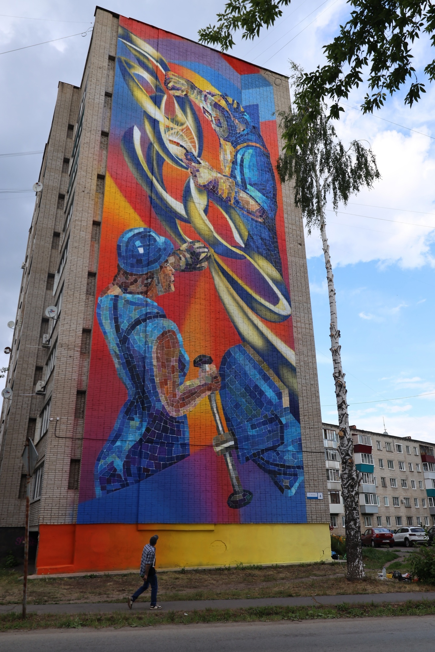В рамках конкурса уличного искусства «Сингурт» фестиваля молодежной уличной культуры GLAZOV STREET FEST, на фасаде дома №4 по улице Энгельса появился новый мурал. Работа называется «Духовные скрепы» и выполнена в технике имитации мозаики.