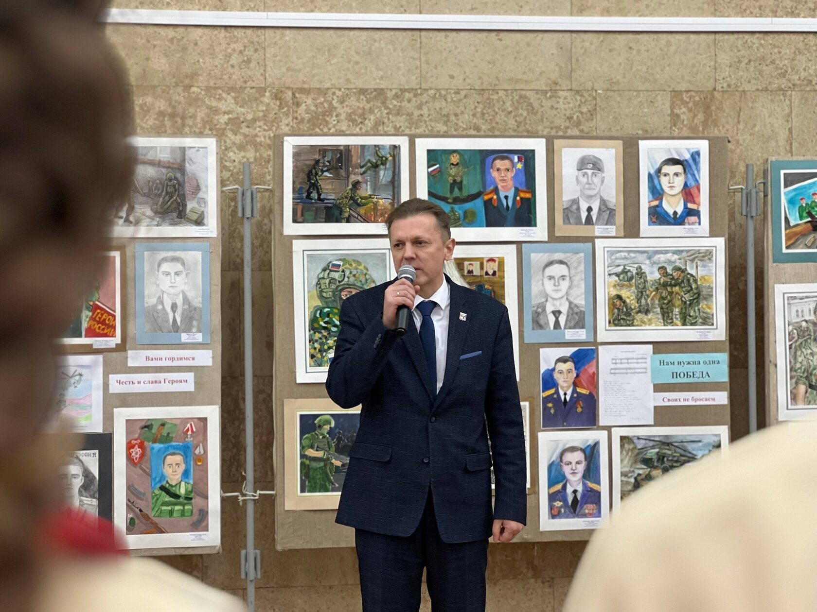 Экспозиция объединила детские рисунки воспитанников Детской художественной школы, посвящённые нынешним защитникам Родины, и проникновенные фотографии фронтового корреспондента Владимира Аносова, запечатлевшего будничную жизнь наших солдат.