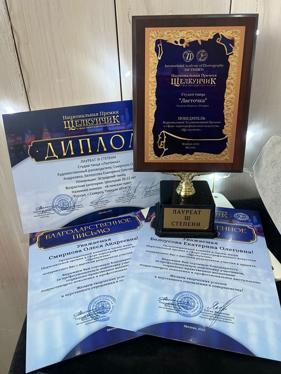Национальная телевизионная премия «Щелкунчик» проходила в Москве с 10 по 13 января. В 2025 году участие в ней приняли свыше 300 коллективов из разных регионов страны. Томскую область представляла северская студия танца «Ласточка» (руководители - Екатерина Белоусова и Олеся Смирнова).