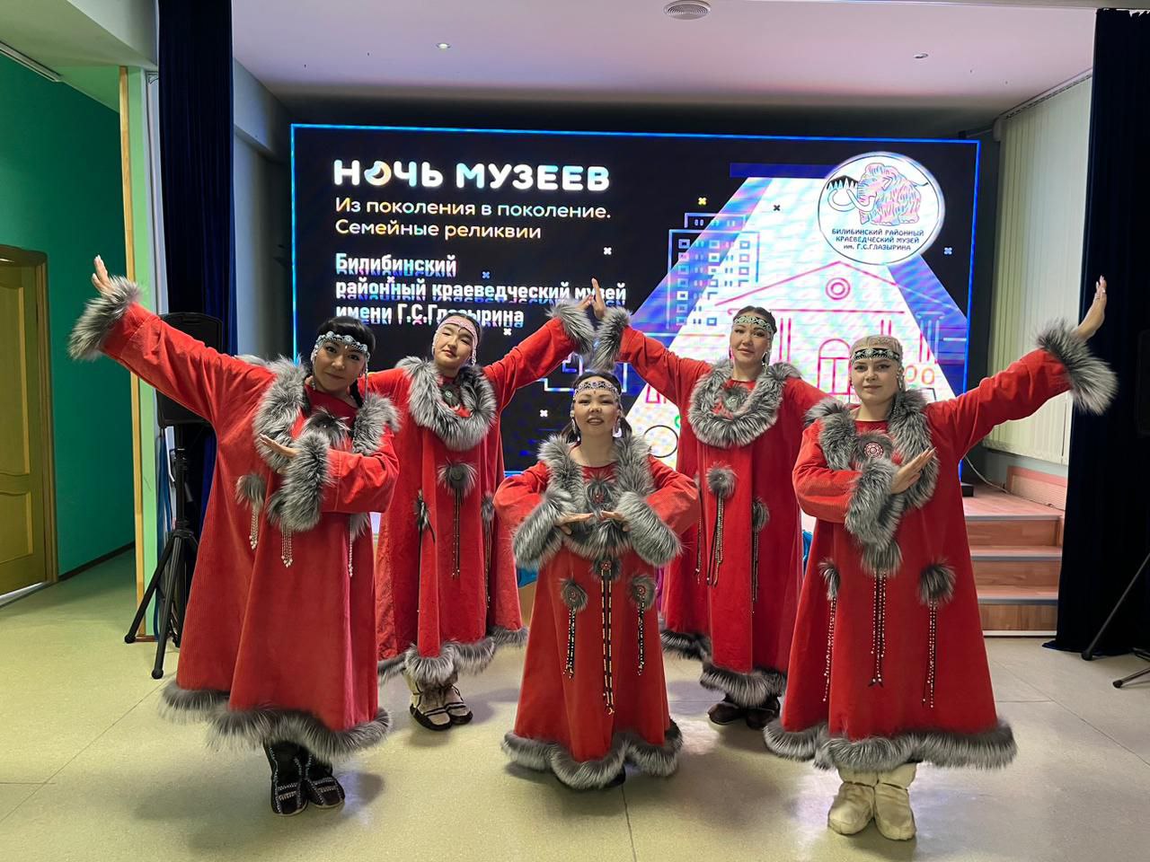 Загадочный голос времени поприветствовал гостей и поведал невероятную и волшебную музейную тайну об экспонатах. В полночь в стенах музея иногда случаются невероятные чудеса. Ожившие манекены рассказали о чаате, поведали историю танца северных народов, провели флешмоб. Ансамбль «Тиркытир» своими красивыми и весёлыми танцами поднимали всем настроение.