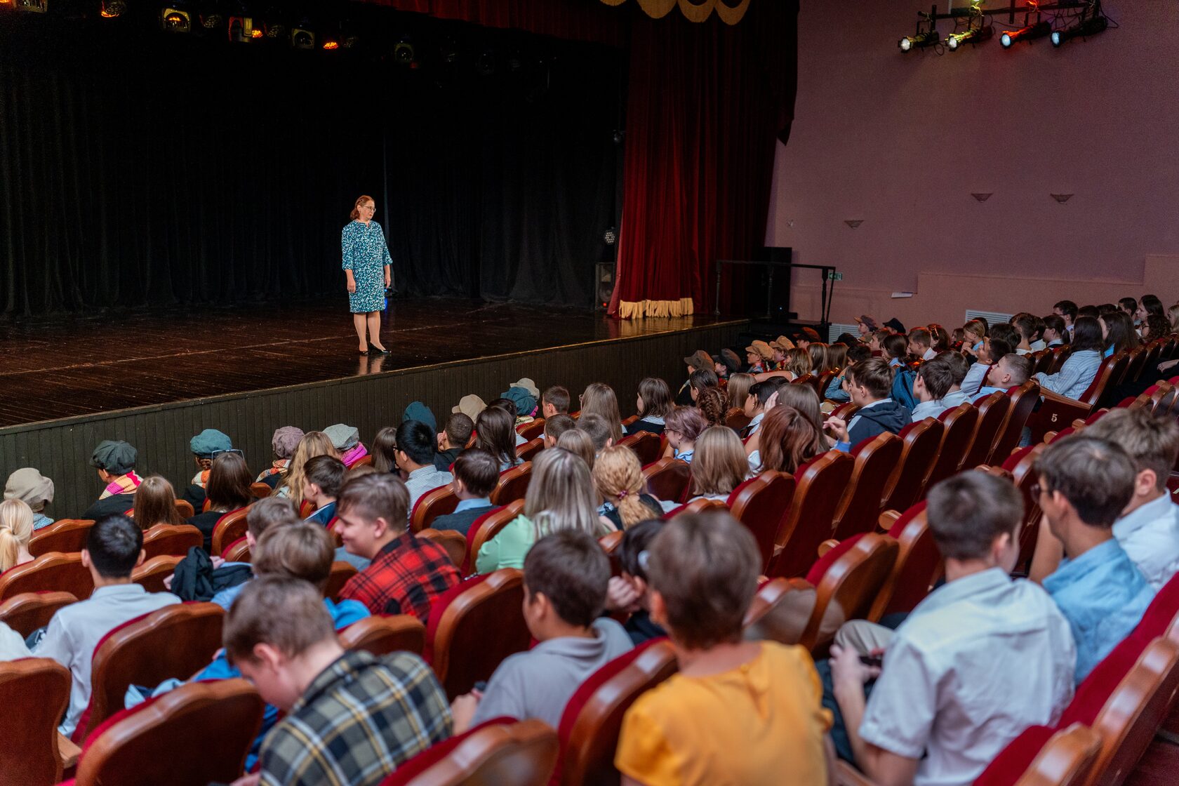Программа мероприятия была разделена на три части. В первой части ребята представили зрителям свой образцовый самодеятельный театральный коллектив «Парадиз» при ВМДТ, а их руководитель Елена Сергеева рассказала о своих талантливых учениках, об их триумфальном участии в отборочном и зональном этапах Всероссийского фестиваля любительских творческих коллективов.