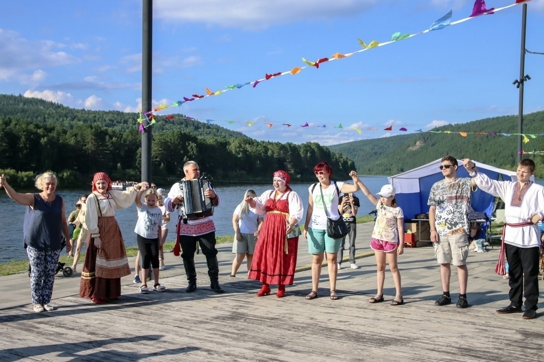 Набережная была наполнена народом - музыка, огромная надувная Белочка, которая играла с детьми "в догоняшки", детский смех и красота окружающей природы - реки, леса, облачного неба и освежающего ветерка - всё это создавало праздник и настроение, отмечают организаторы.